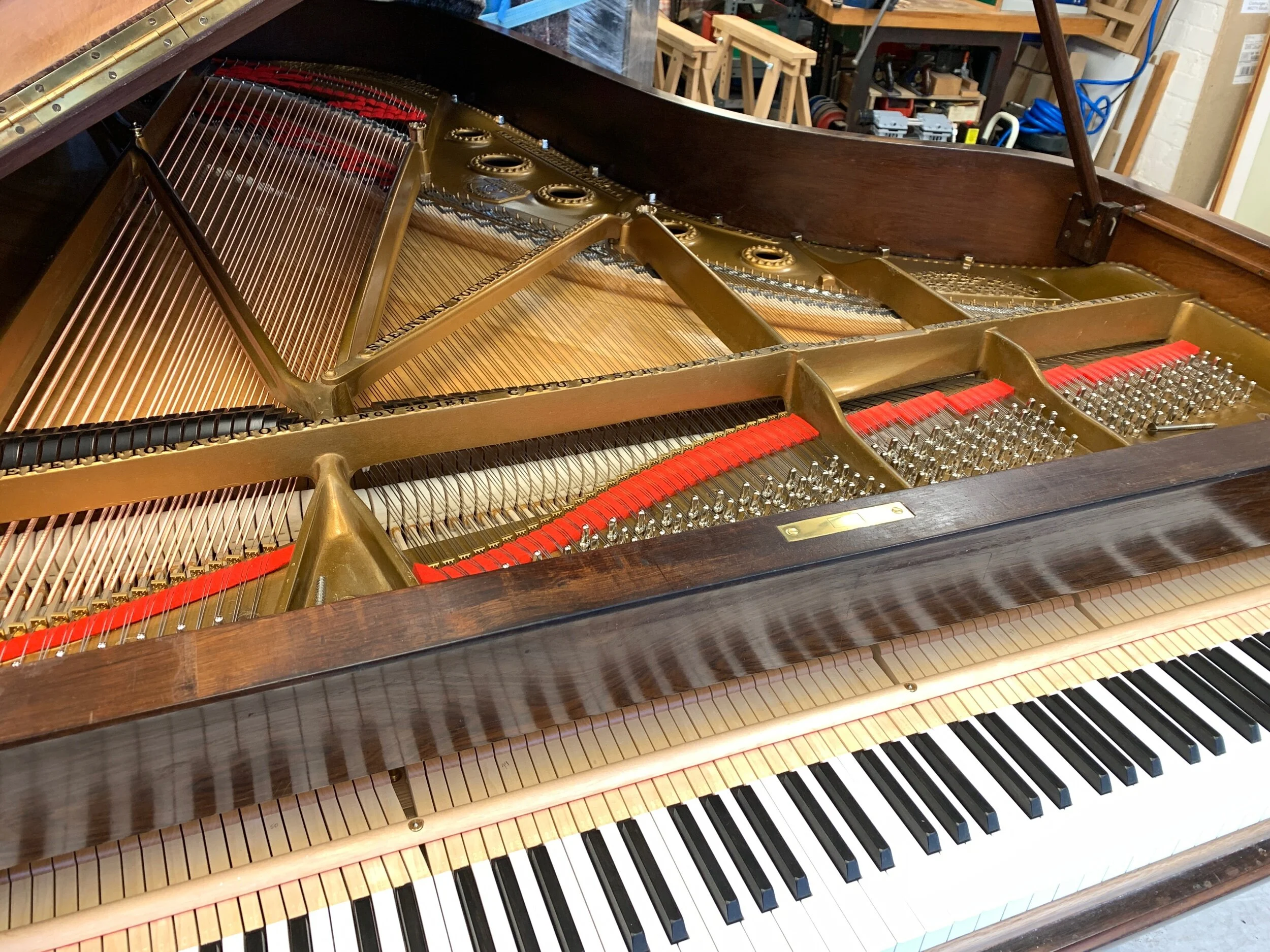 Fitting a new Steinway action, keyboard and key frame to a 1906 Steinway model B.