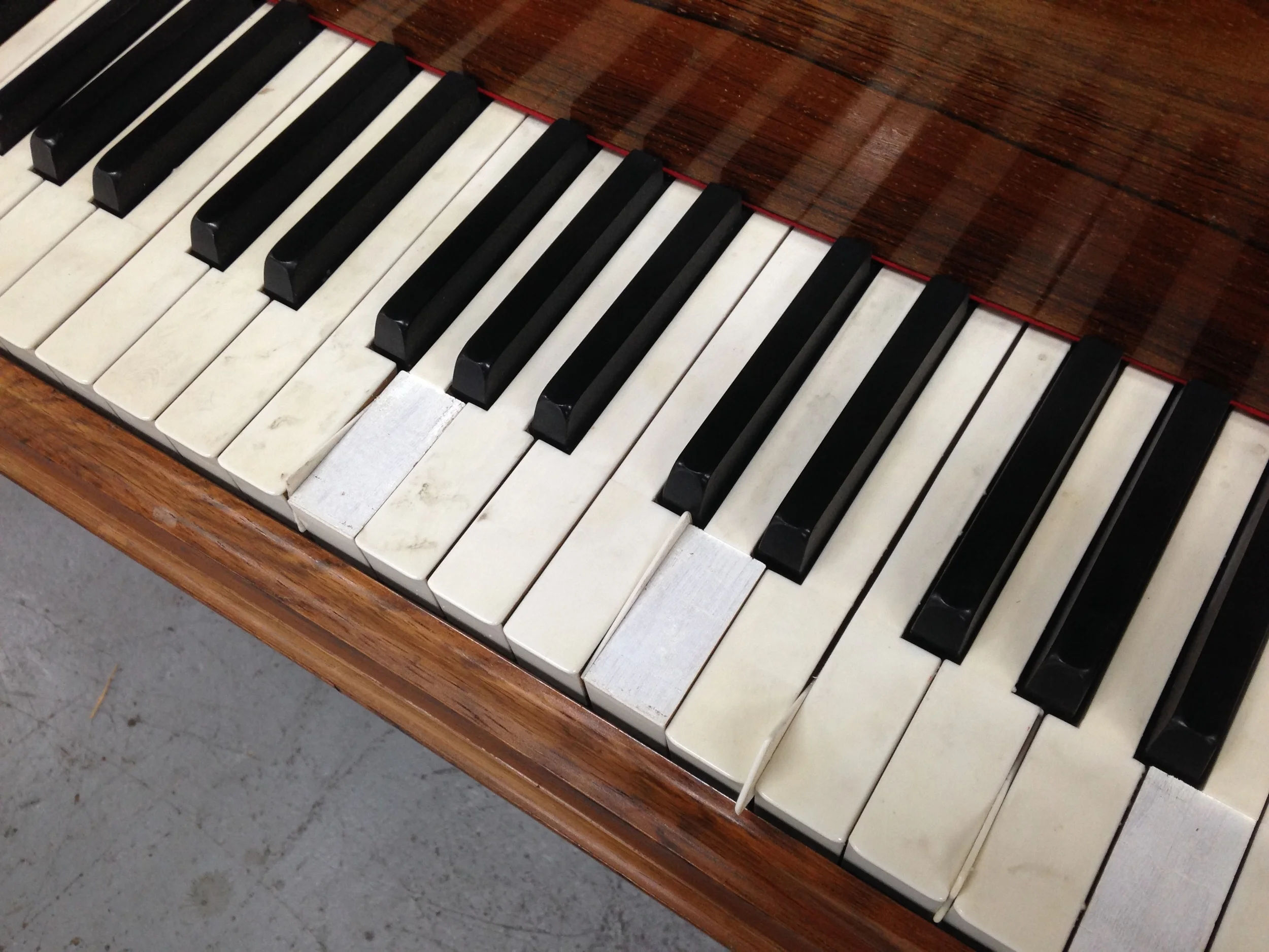 A lot of the original ivories were missing and the others were loose, so the keyboard was restored using a more modern Steinway key covering. Bone covering can be supplied but at considerably more cost.